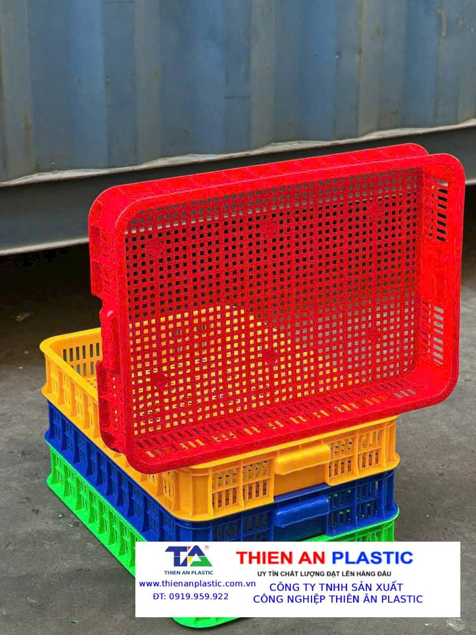 Các lỗ này không chỉ giúp hàng hóa bên trong luôn được lưu thông không khí tốt mà còn cho phép thoát nước nhanh chóng, thoát hơi ẩm hiệu quả, ngăn ngừa tình trạng úng nước, lên men, nấm mốc hoặc hư hỏng do bí hơi – những vấn đề thường gặp ở các loại thùng kín hoặc bao bì truyền thống như thùng carton, sọt tre, thùng xốp. Nhờ đó, sản phẩm bên trong luôn giữ được độ tươi mới lâu hơn, giảm thiểu tỷ lệ hao hụt đáng kể, từ đó giúp doanh nghiệp tiết kiệm chi phí và nâng cao chất lượng hàng hóa đưa ra thị trường.