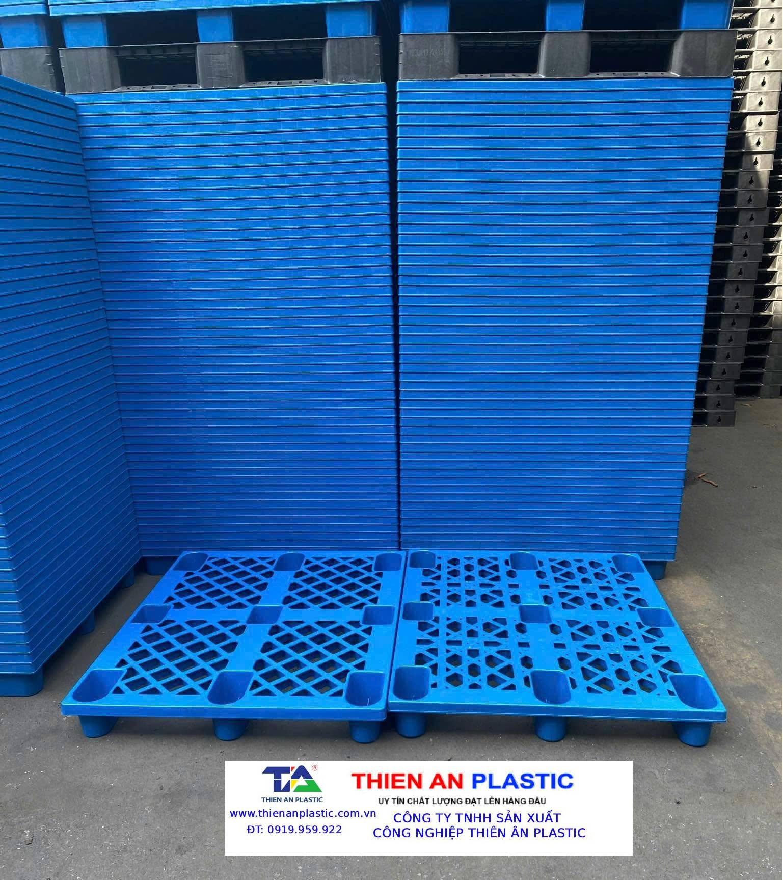 Với dây chuyền sản xuất tiên tiến, nguyên liệu nhựa nguyên sinh HDPE/PP nhập khẩu 100%, Thiên Ân Plastic cung cấp đầy đủ các loại pallet nhựa xuất khẩu: pallet một mặt nhẹ, pallet hai mặt chịu lực, pallet liền khối rackable, pallet có lỗ thoát nước, pallet chuẩn ISO đa kích thước, pallet food-grade, pallet chống UV cao cấp.