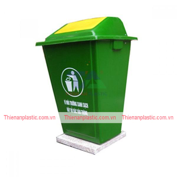- Dung tích: 60 lít. Đây là dung tích lý tưởng cho các vị trí có lượng rác thải vừa phải, không đòi hỏi thu gom quá thường xuyên nhưng vẫn đảm bảo không bị quá tải.