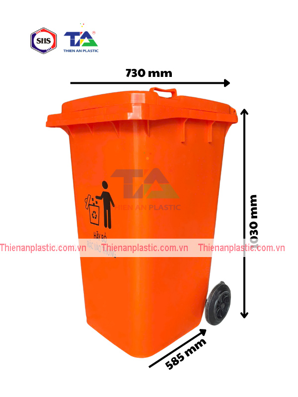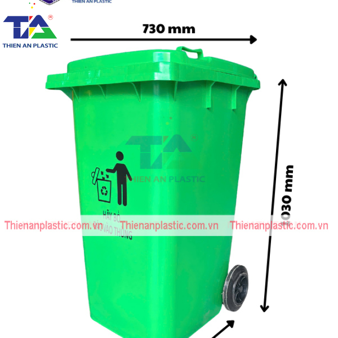 Thùng Rác Nhựa 240 Lít (KT: 730 x 585 x 1050mm)